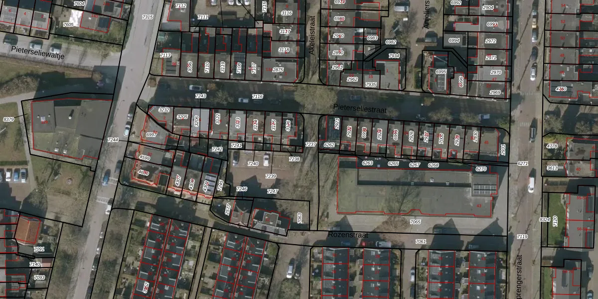 Gebruik de zoekbalk of klik op een perceel om informatie over het perceel te bekijken.