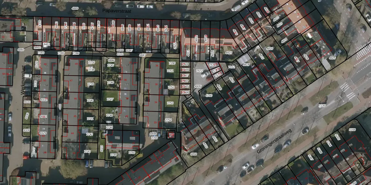 Gebruik de zoekbalk of klik op een perceel om informatie over het perceel te bekijken.