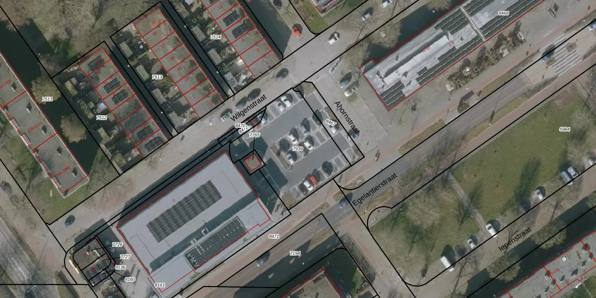 Gebruik de zoekbalk of klik op een perceel om informatie over het perceel te bekijken.