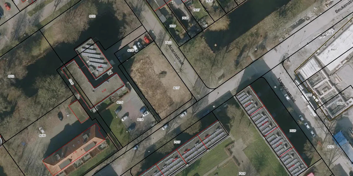 Gebruik de zoekbalk of klik op een perceel om informatie over het perceel te bekijken.