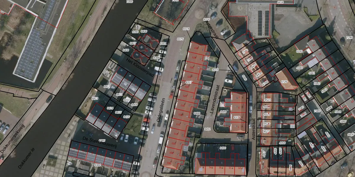 Gebruik de zoekbalk of klik op een perceel om informatie over het perceel te bekijken.