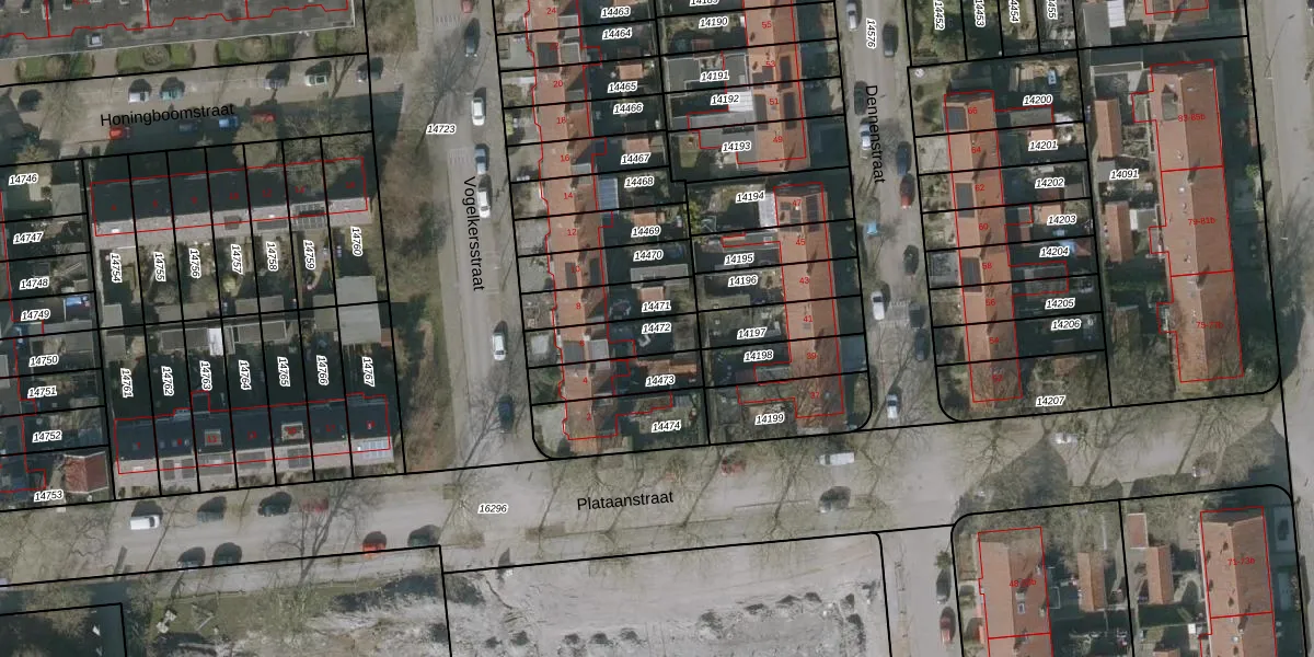 Gebruik de zoekbalk of klik op een perceel om informatie over het perceel te bekijken.