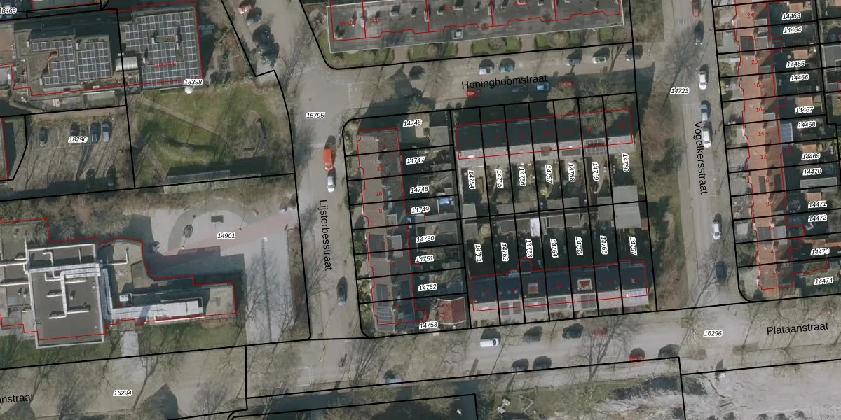 Gebruik de zoekbalk of klik op een perceel om informatie over het perceel te bekijken.