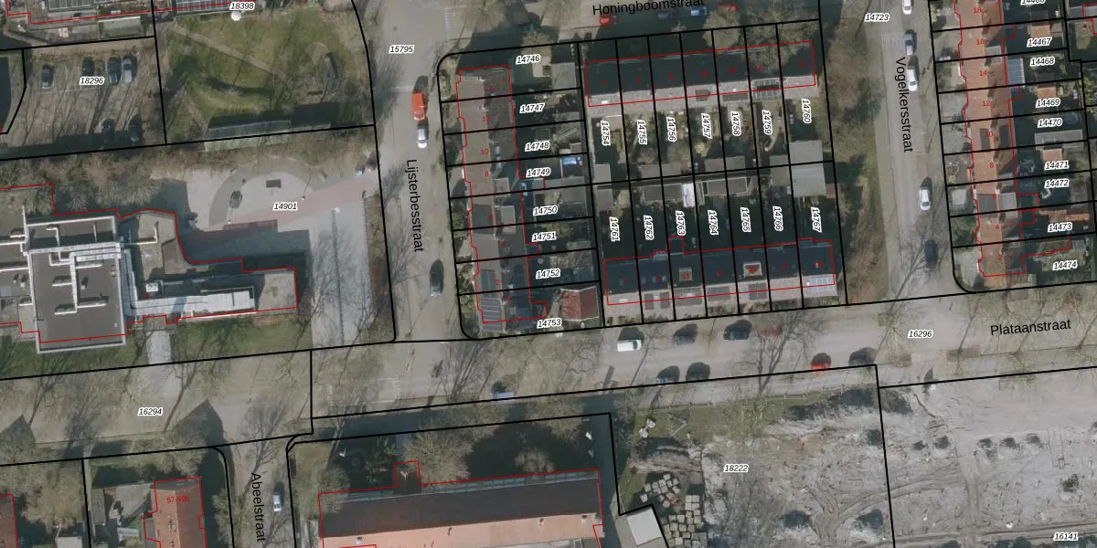 Gebruik de zoekbalk of klik op een perceel om informatie over het perceel te bekijken.
