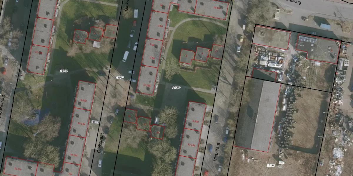 Gebruik de zoekbalk of klik op een perceel om informatie over het perceel te bekijken.