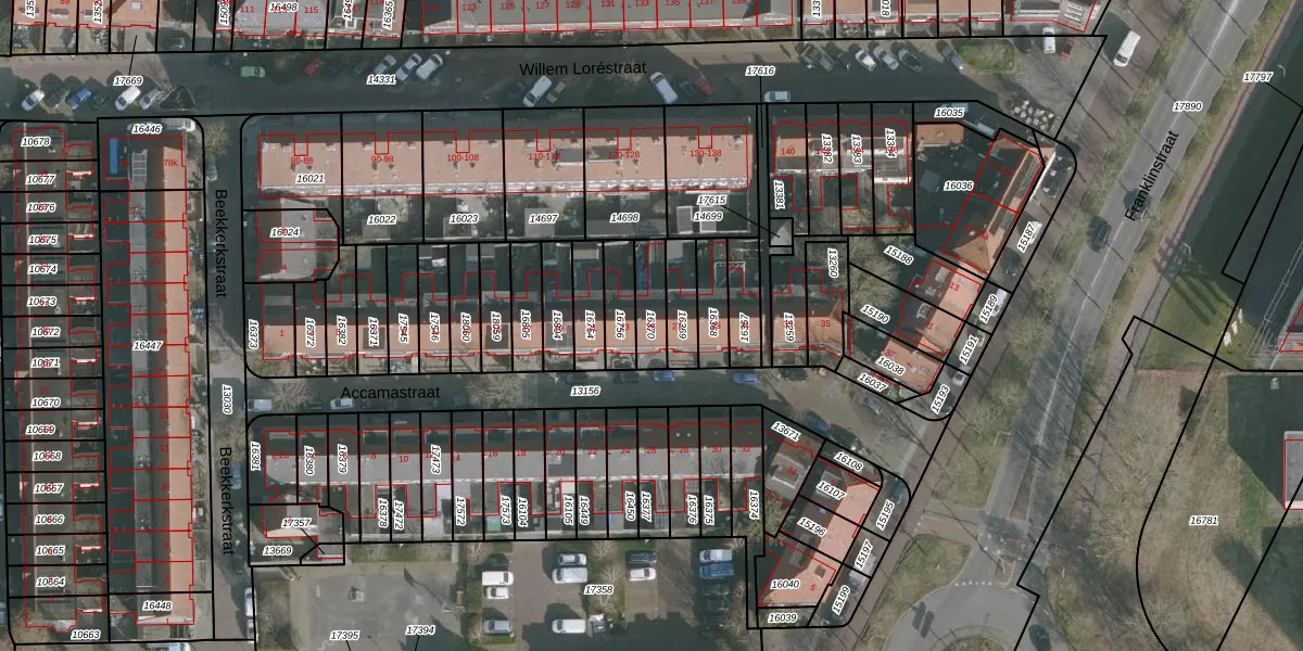 Gebruik de zoekbalk of klik op een perceel om informatie over het perceel te bekijken.