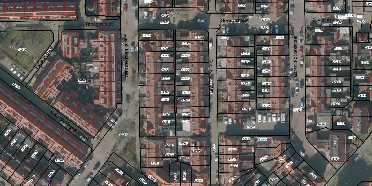 Gebruik de zoekbalk of klik op een perceel om informatie over het perceel te bekijken.