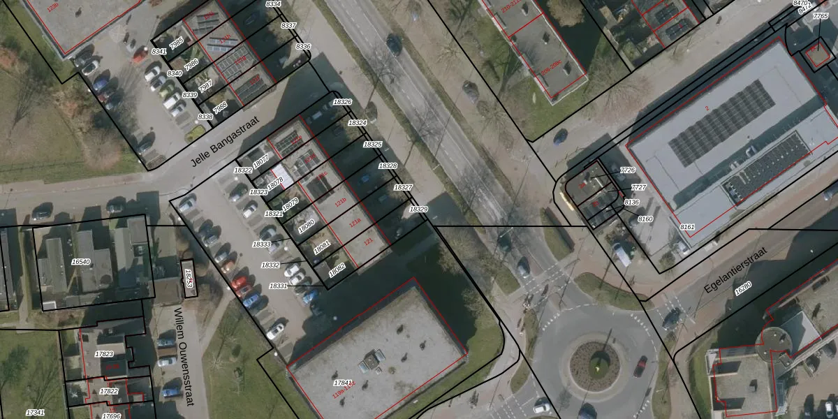Gebruik de zoekbalk of klik op een perceel om informatie over het perceel te bekijken.