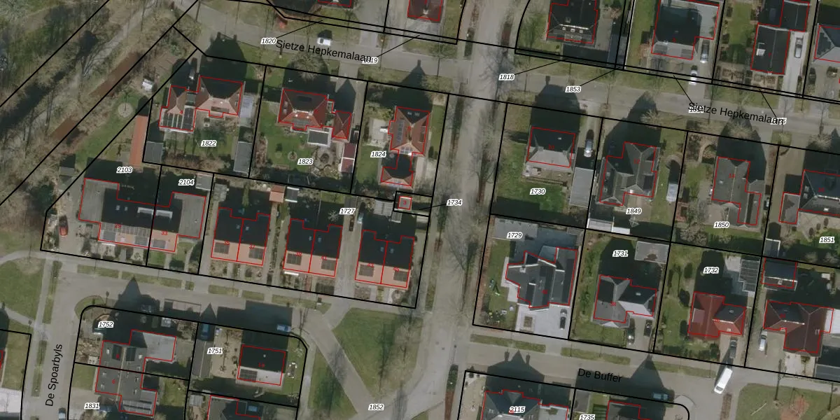 Gebruik de zoekbalk of klik op een perceel om informatie over het perceel te bekijken.