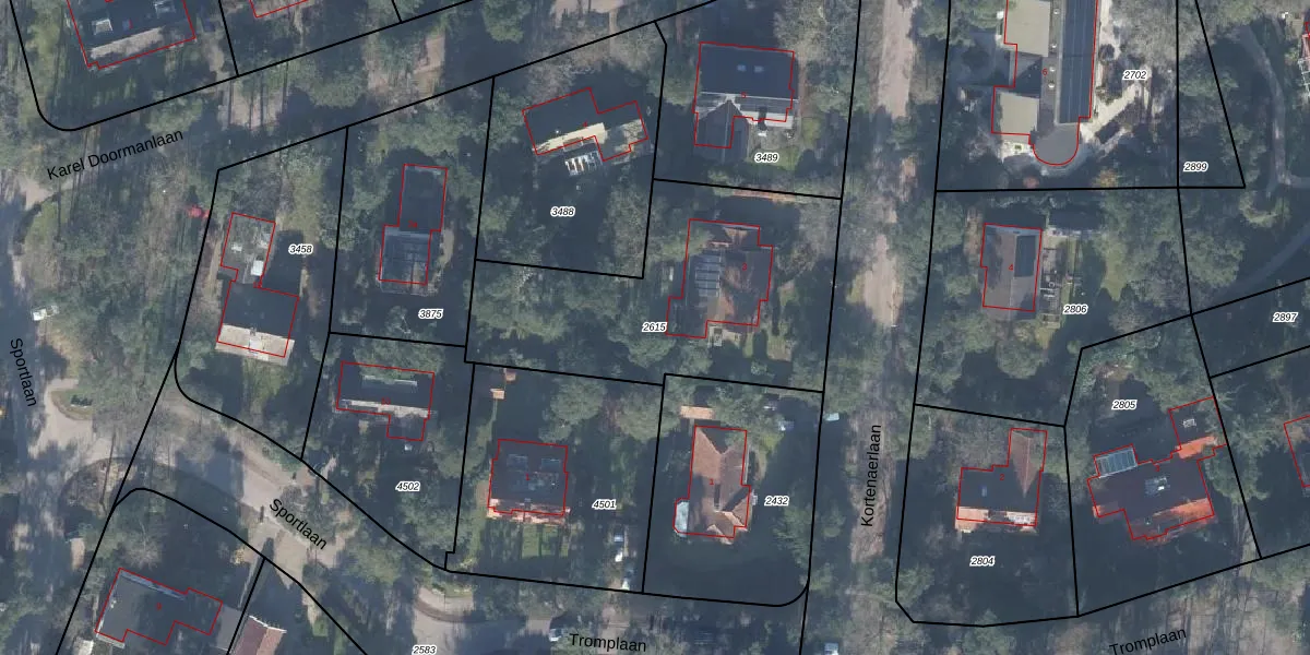 Gebruik de zoekbalk of klik op een perceel om informatie over het perceel te bekijken.