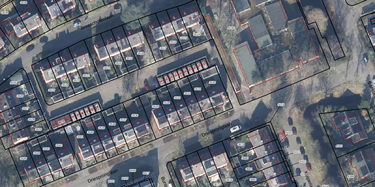 Gebruik de zoekbalk of klik op een perceel om informatie over het perceel te bekijken.