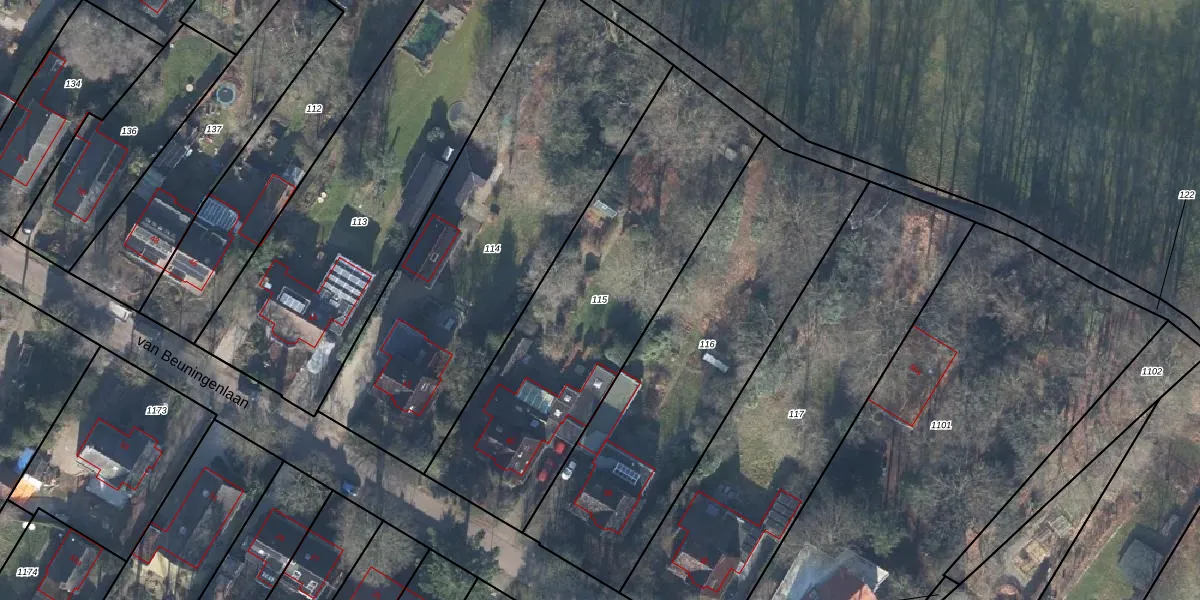 Gebruik de zoekbalk of klik op een perceel om informatie over het perceel te bekijken.