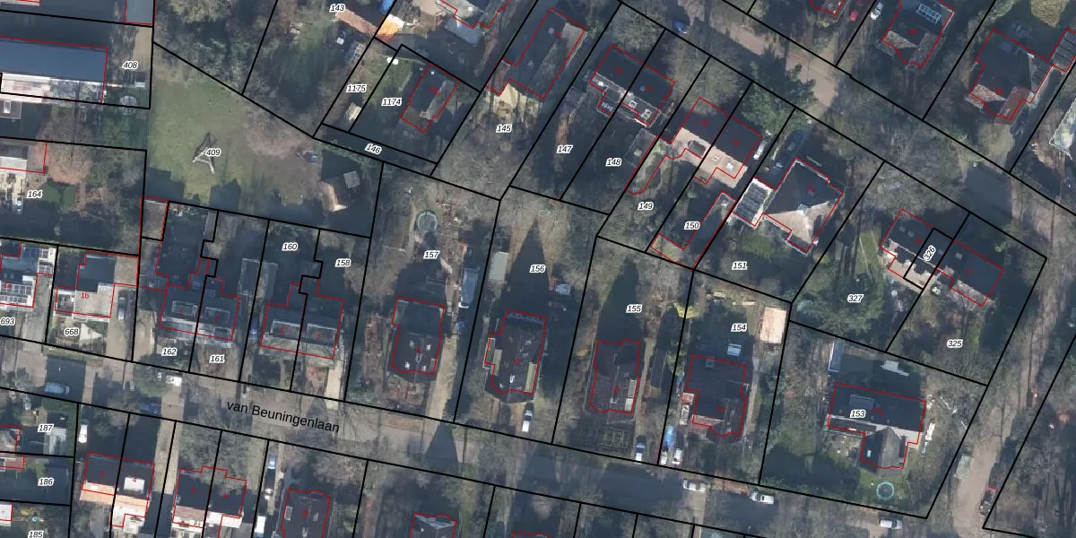 Gebruik de zoekbalk of klik op een perceel om informatie over het perceel te bekijken.