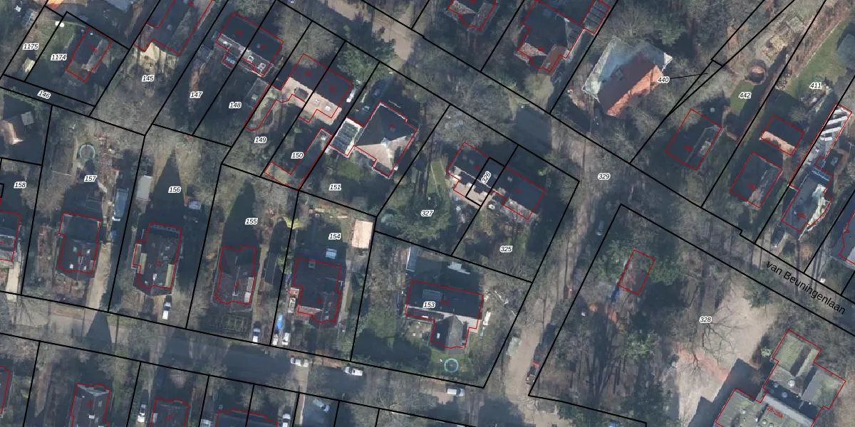 Gebruik de zoekbalk of klik op een perceel om informatie over het perceel te bekijken.