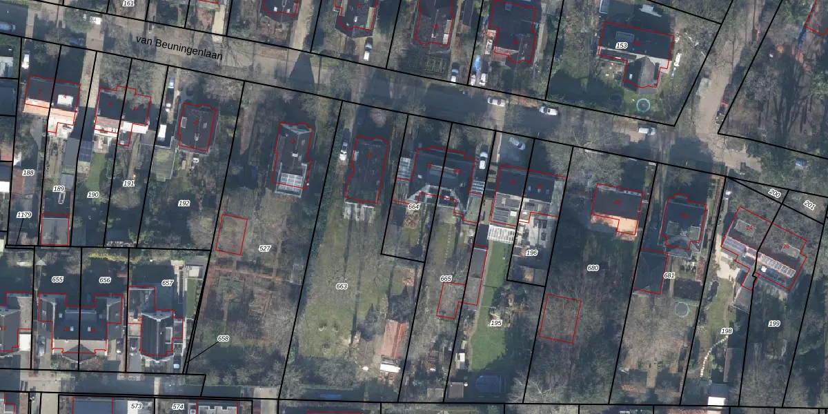 Gebruik de zoekbalk of klik op een perceel om informatie over het perceel te bekijken.