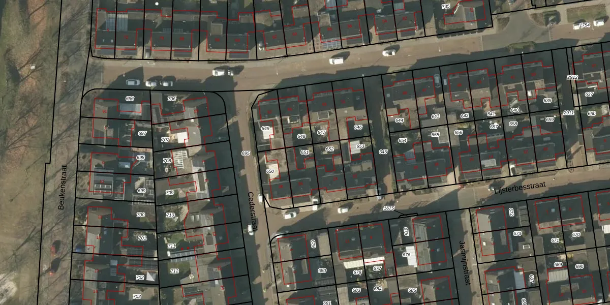 Gebruik de zoekbalk of klik op een perceel om informatie over het perceel te bekijken.