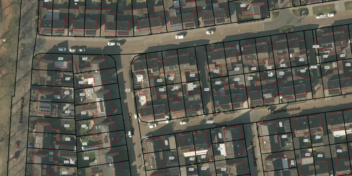 Gebruik de zoekbalk of klik op een perceel om informatie over het perceel te bekijken.