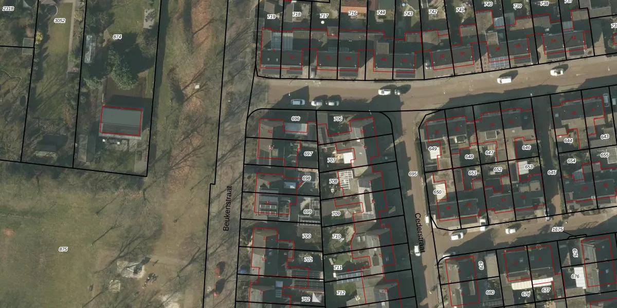 Gebruik de zoekbalk of klik op een perceel om informatie over het perceel te bekijken.