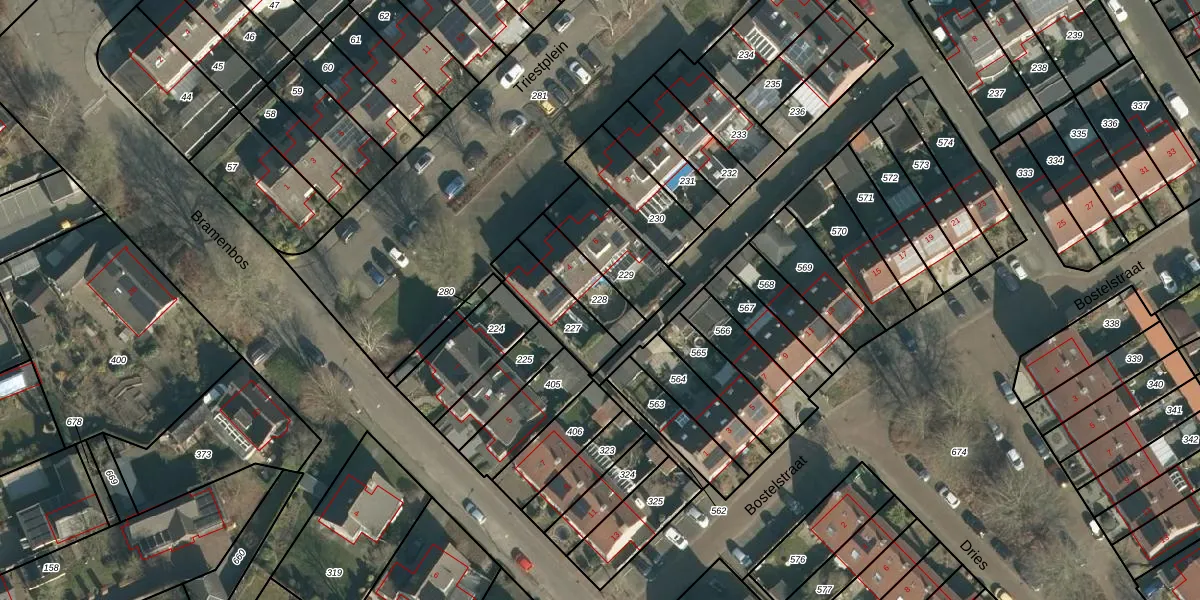 Gebruik de zoekbalk of klik op een perceel om informatie over het perceel te bekijken.