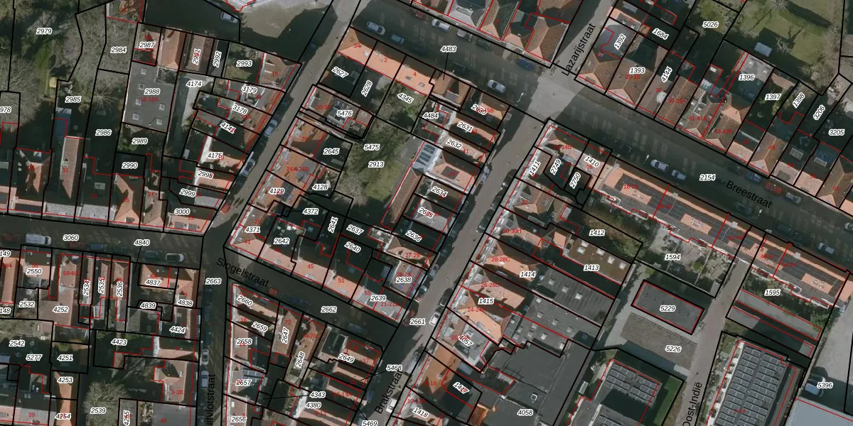 Gebruik de zoekbalk of klik op een perceel om informatie over het perceel te bekijken.