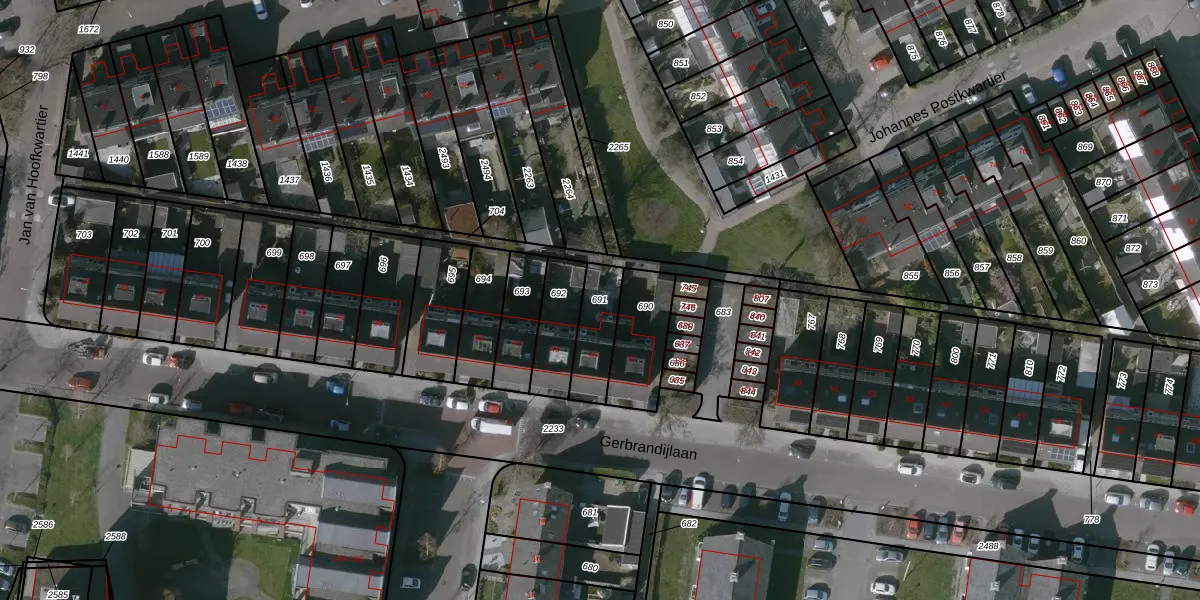 Gebruik de zoekbalk of klik op een perceel om informatie over het perceel te bekijken.