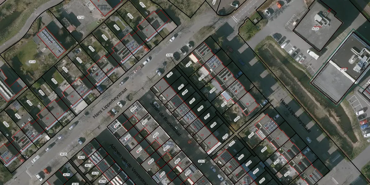 Gebruik de zoekbalk of klik op een perceel om informatie over het perceel te bekijken.