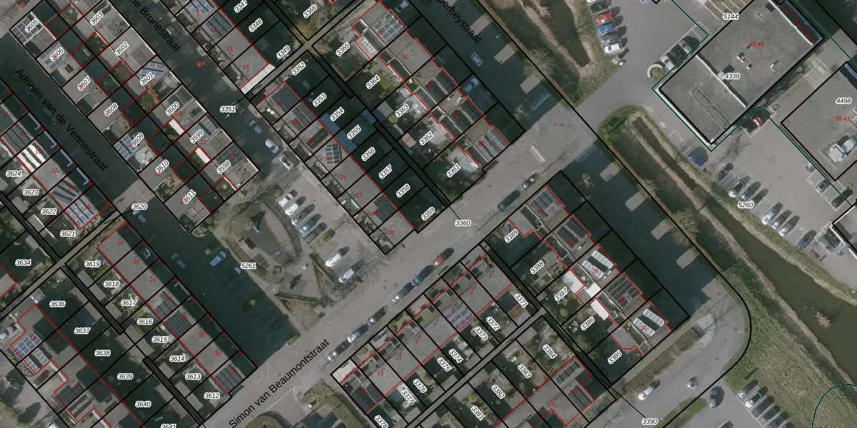 Gebruik de zoekbalk of klik op een perceel om informatie over het perceel te bekijken.