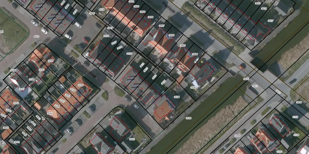 Gebruik de zoekbalk of klik op een perceel om informatie over het perceel te bekijken.