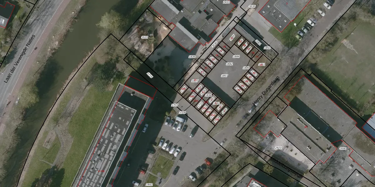 Gebruik de zoekbalk of klik op een perceel om informatie over het perceel te bekijken.