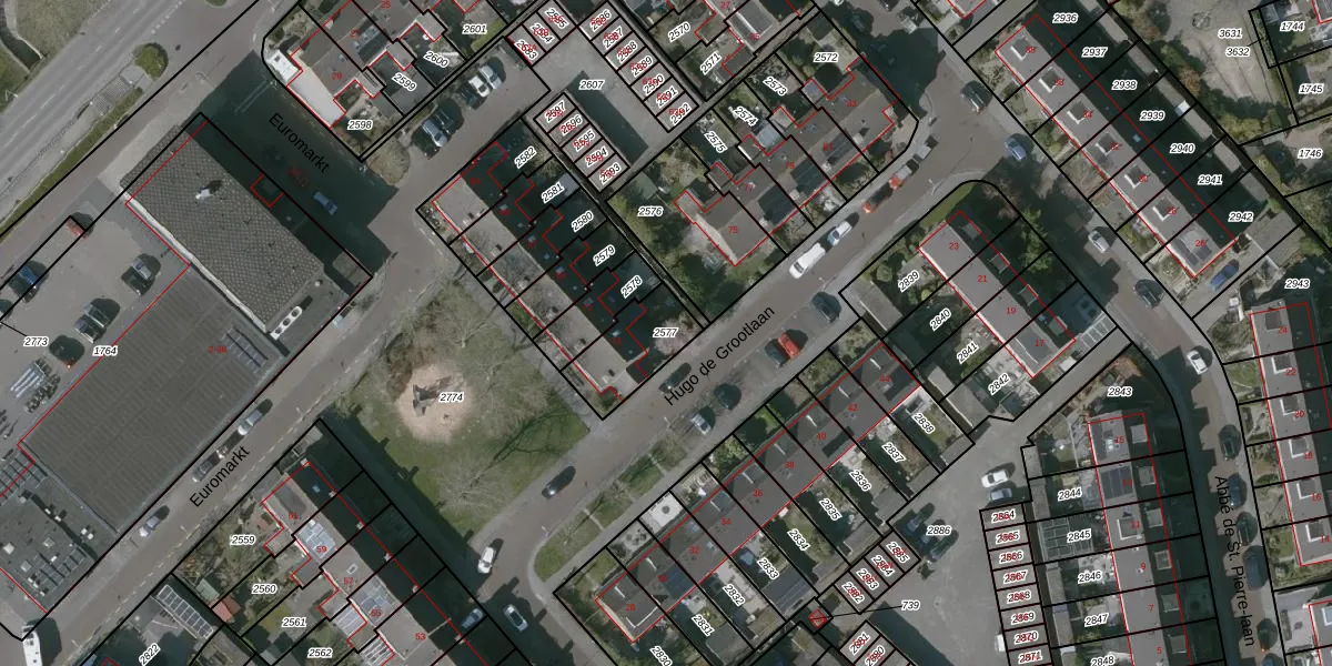 Gebruik de zoekbalk of klik op een perceel om informatie over het perceel te bekijken.