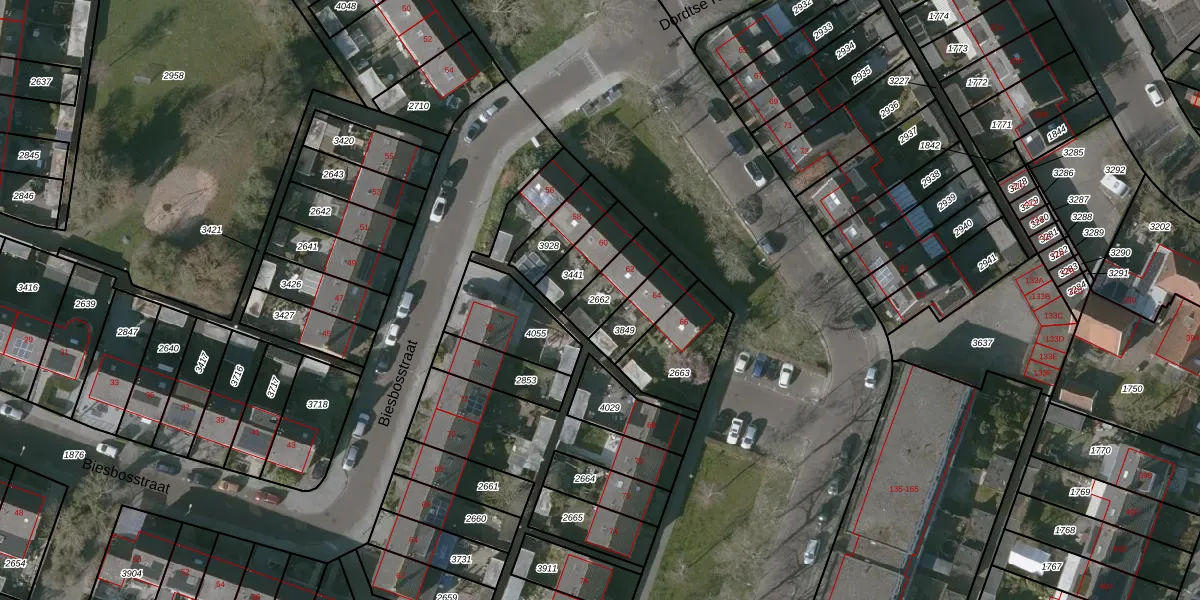 Gebruik de zoekbalk of klik op een perceel om informatie over het perceel te bekijken.