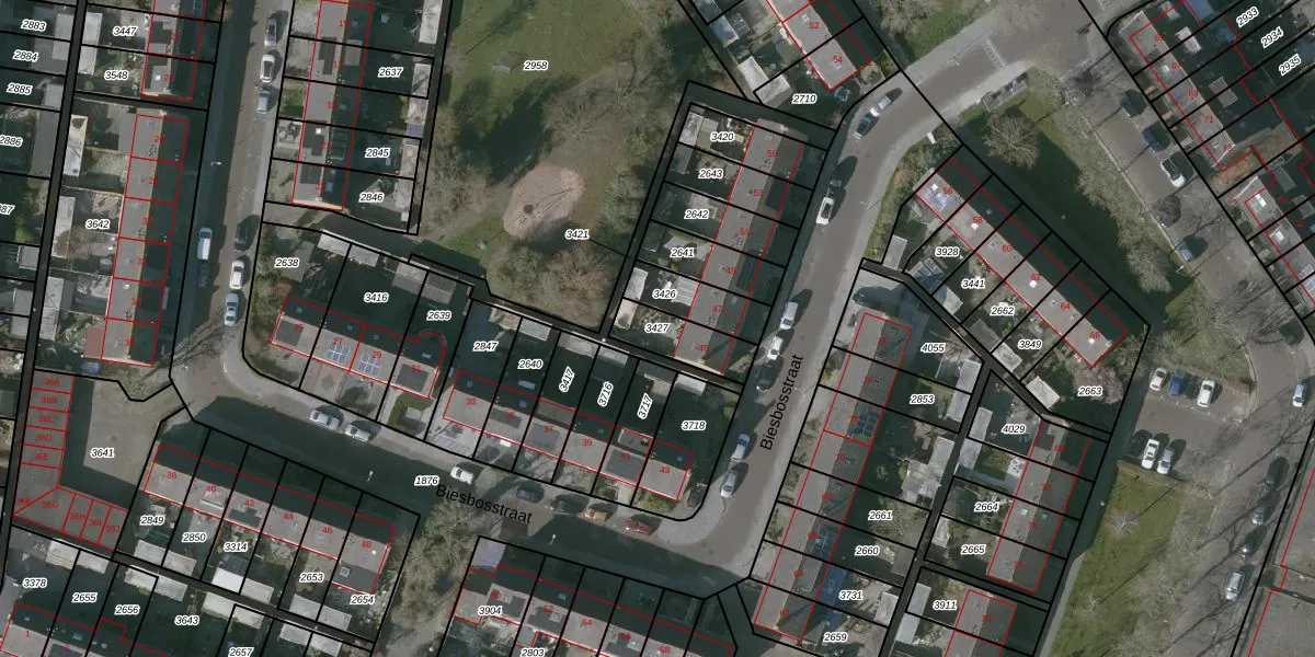 Gebruik de zoekbalk of klik op een perceel om informatie over het perceel te bekijken.