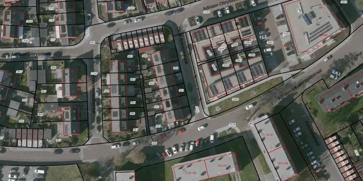 Gebruik de zoekbalk of klik op een perceel om informatie over het perceel te bekijken.
