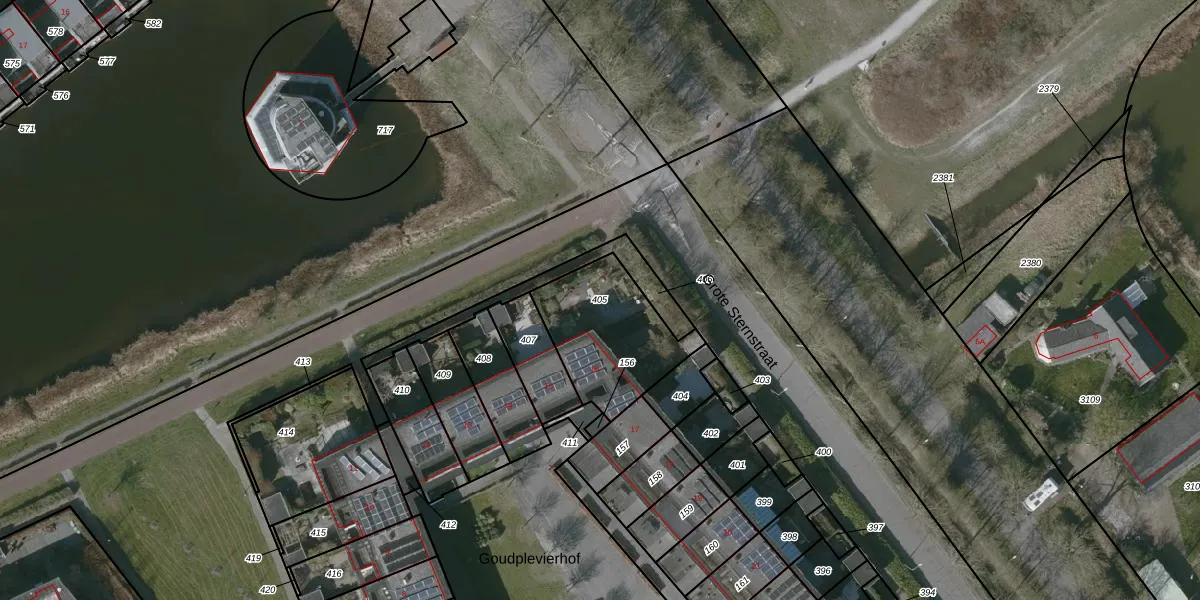 Gebruik de zoekbalk of klik op een perceel om informatie over het perceel te bekijken.