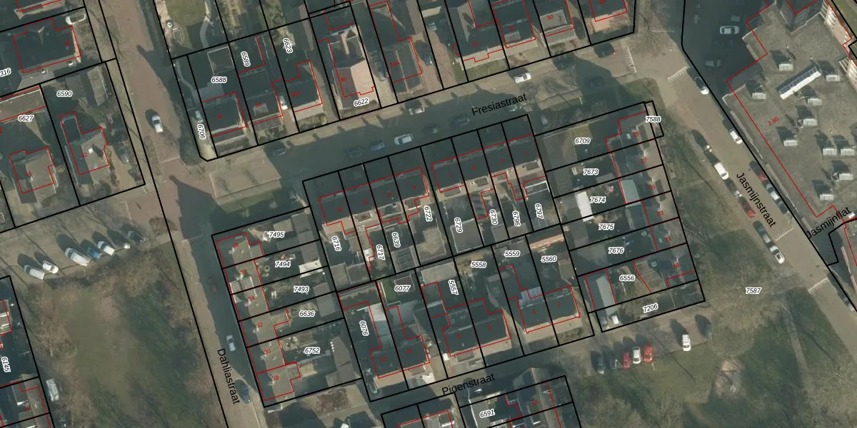 Gebruik de zoekbalk of klik op een perceel om informatie over het perceel te bekijken.