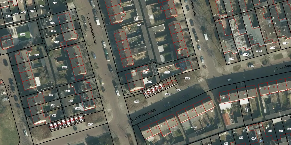 Gebruik de zoekbalk of klik op een perceel om informatie over het perceel te bekijken.