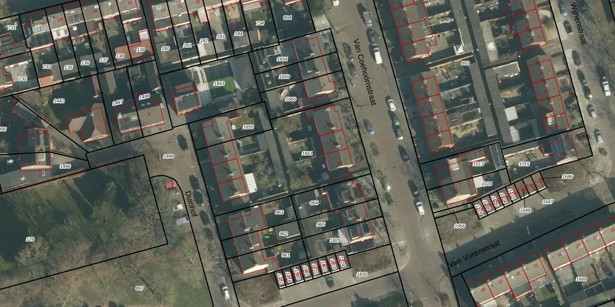 Gebruik de zoekbalk of klik op een perceel om informatie over het perceel te bekijken.