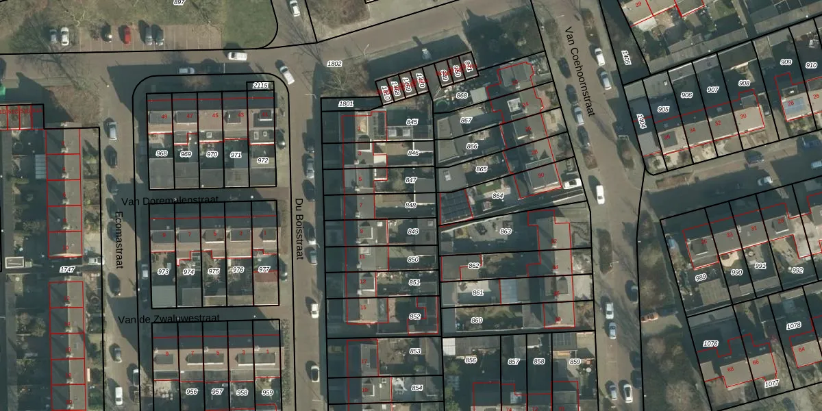 Gebruik de zoekbalk of klik op een perceel om informatie over het perceel te bekijken.