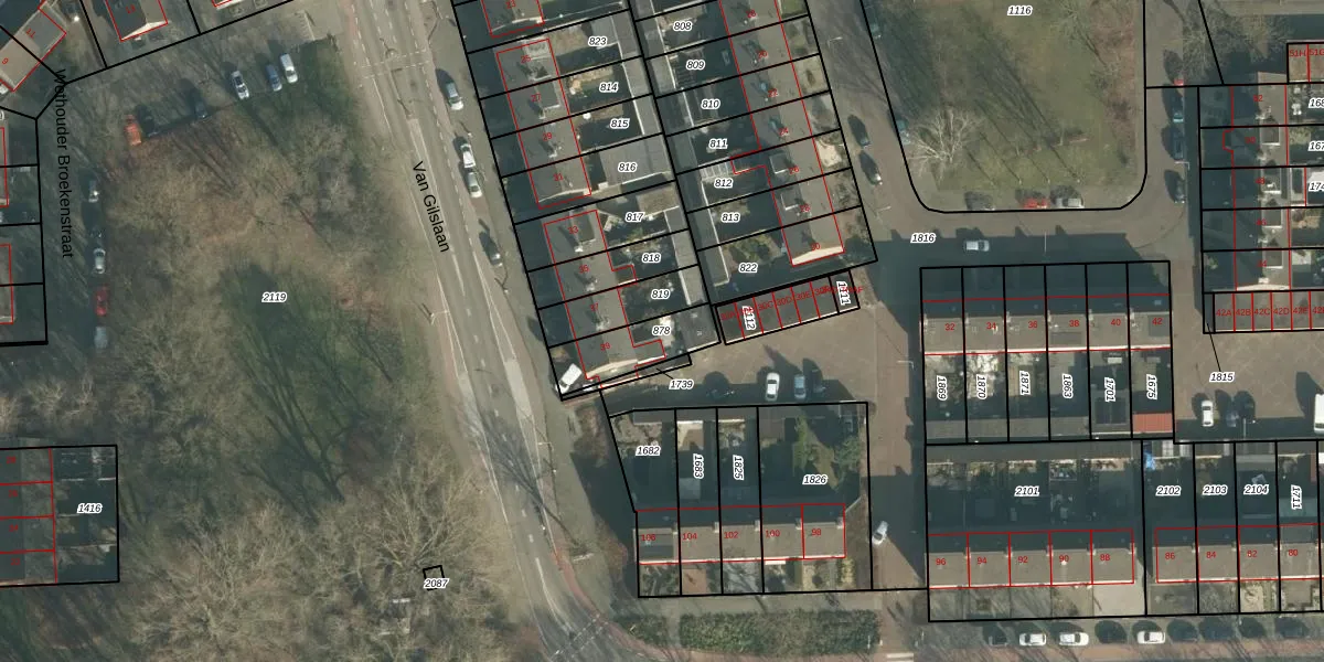 Gebruik de zoekbalk of klik op een perceel om informatie over het perceel te bekijken.