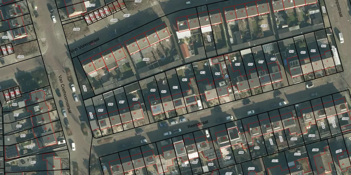 Gebruik de zoekbalk of klik op een perceel om informatie over het perceel te bekijken.