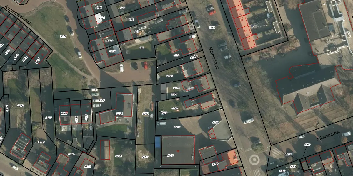 Gebruik de zoekbalk of klik op een perceel om informatie over het perceel te bekijken.