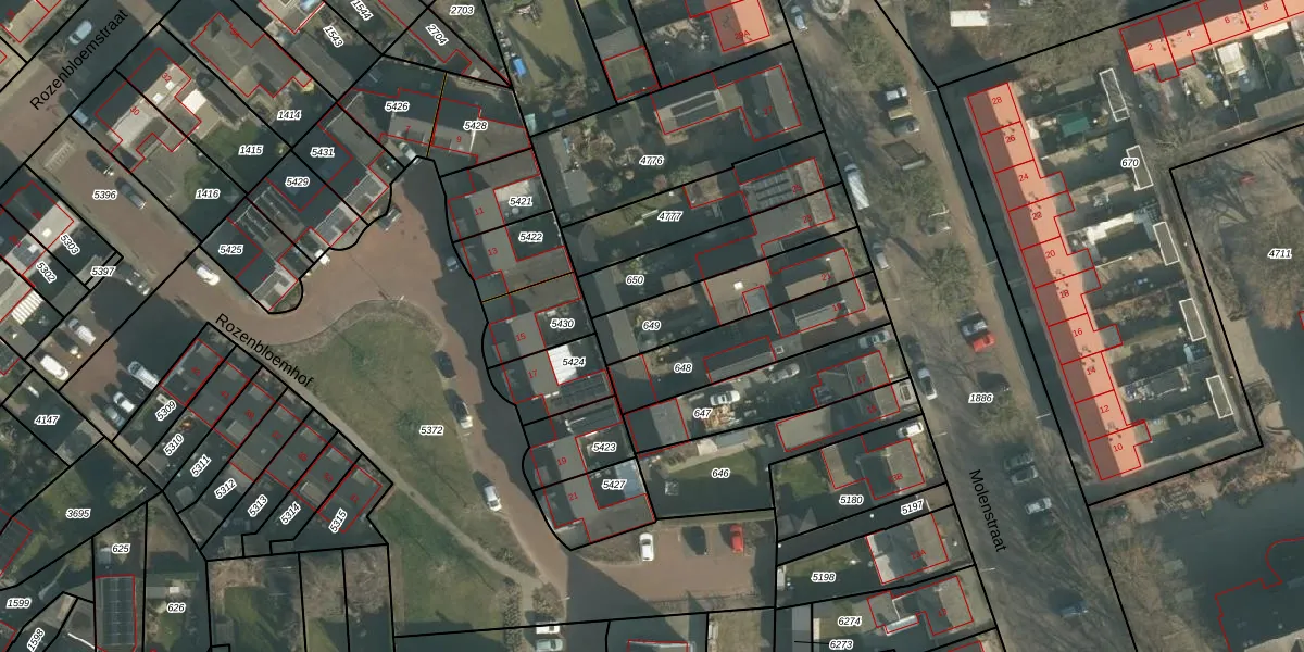 Gebruik de zoekbalk of klik op een perceel om informatie over het perceel te bekijken.