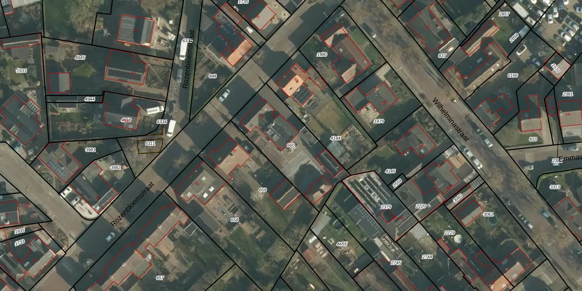 Gebruik de zoekbalk of klik op een perceel om informatie over het perceel te bekijken.