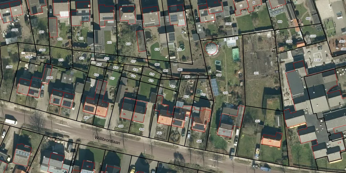 Gebruik de zoekbalk of klik op een perceel om informatie over het perceel te bekijken.