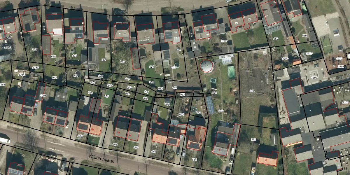 Gebruik de zoekbalk of klik op een perceel om informatie over het perceel te bekijken.