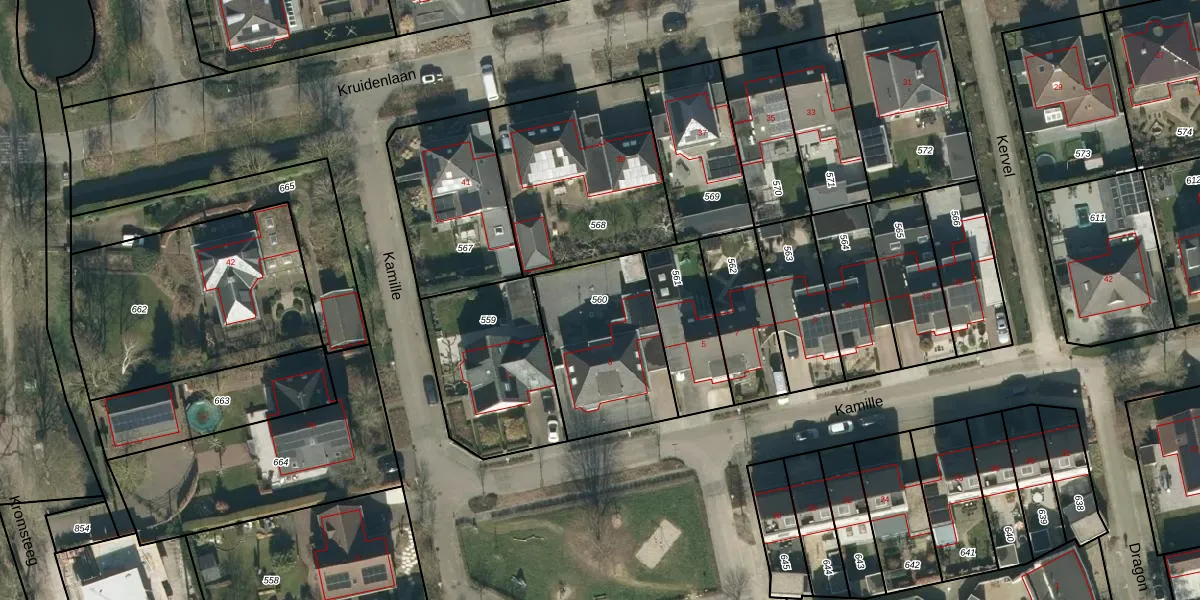 Gebruik de zoekbalk of klik op een perceel om informatie over het perceel te bekijken.