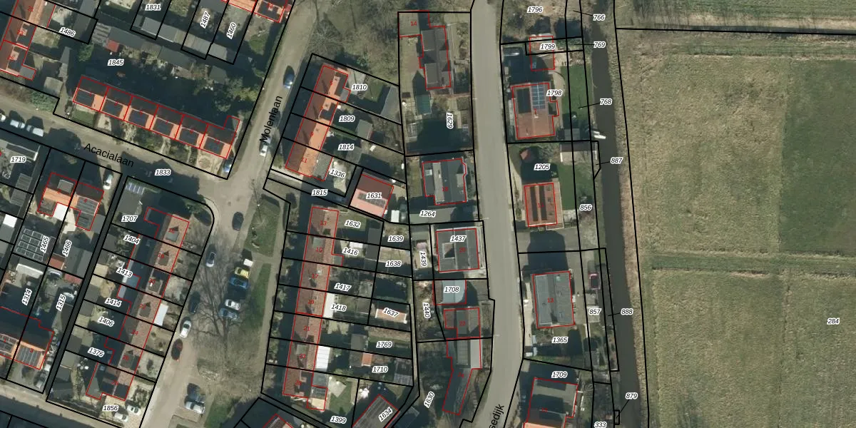 Gebruik de zoekbalk of klik op een perceel om informatie over het perceel te bekijken.