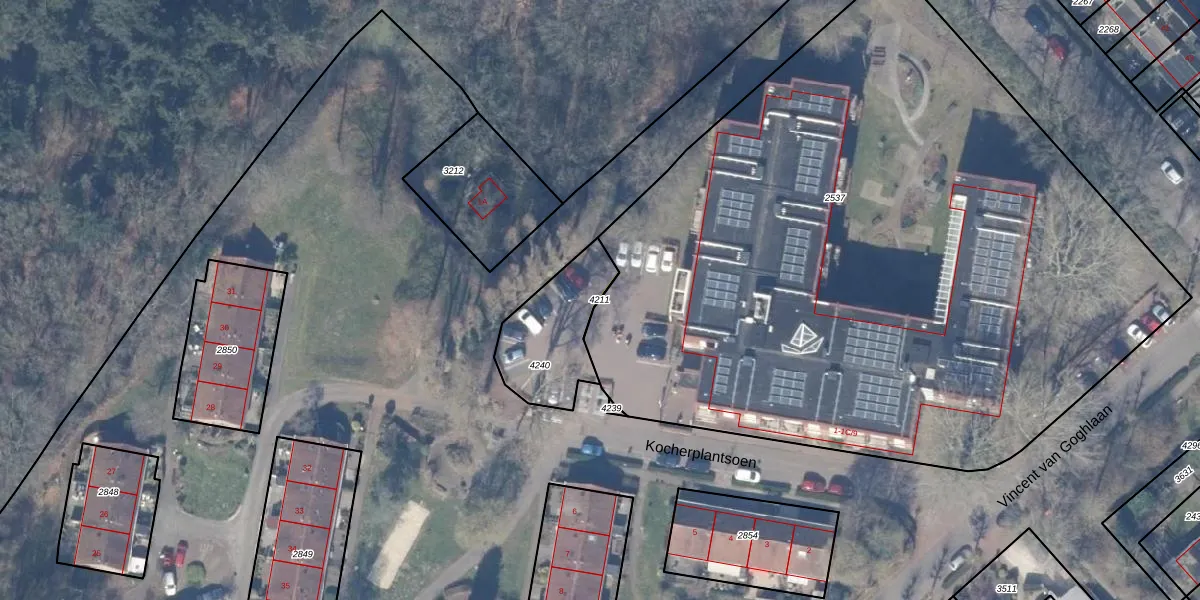 Gebruik de zoekbalk of klik op een perceel om informatie over het perceel te bekijken.
