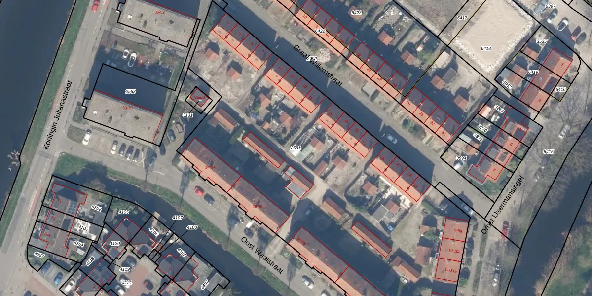 Gebruik de zoekbalk of klik op een perceel om informatie over het perceel te bekijken.