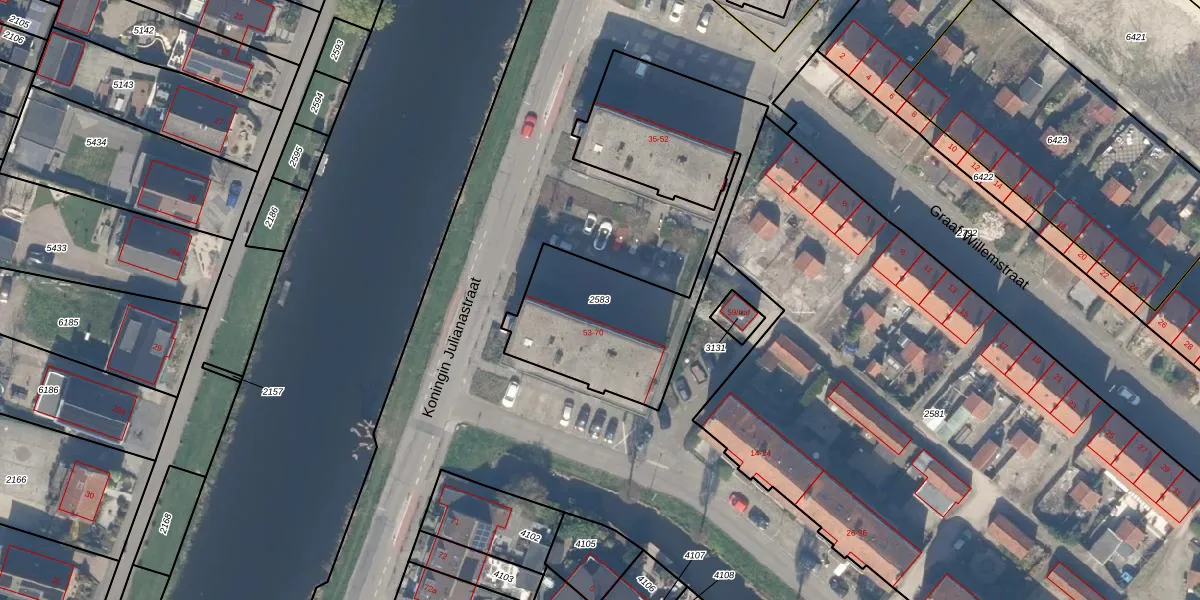 Gebruik de zoekbalk of klik op een perceel om informatie over het perceel te bekijken.